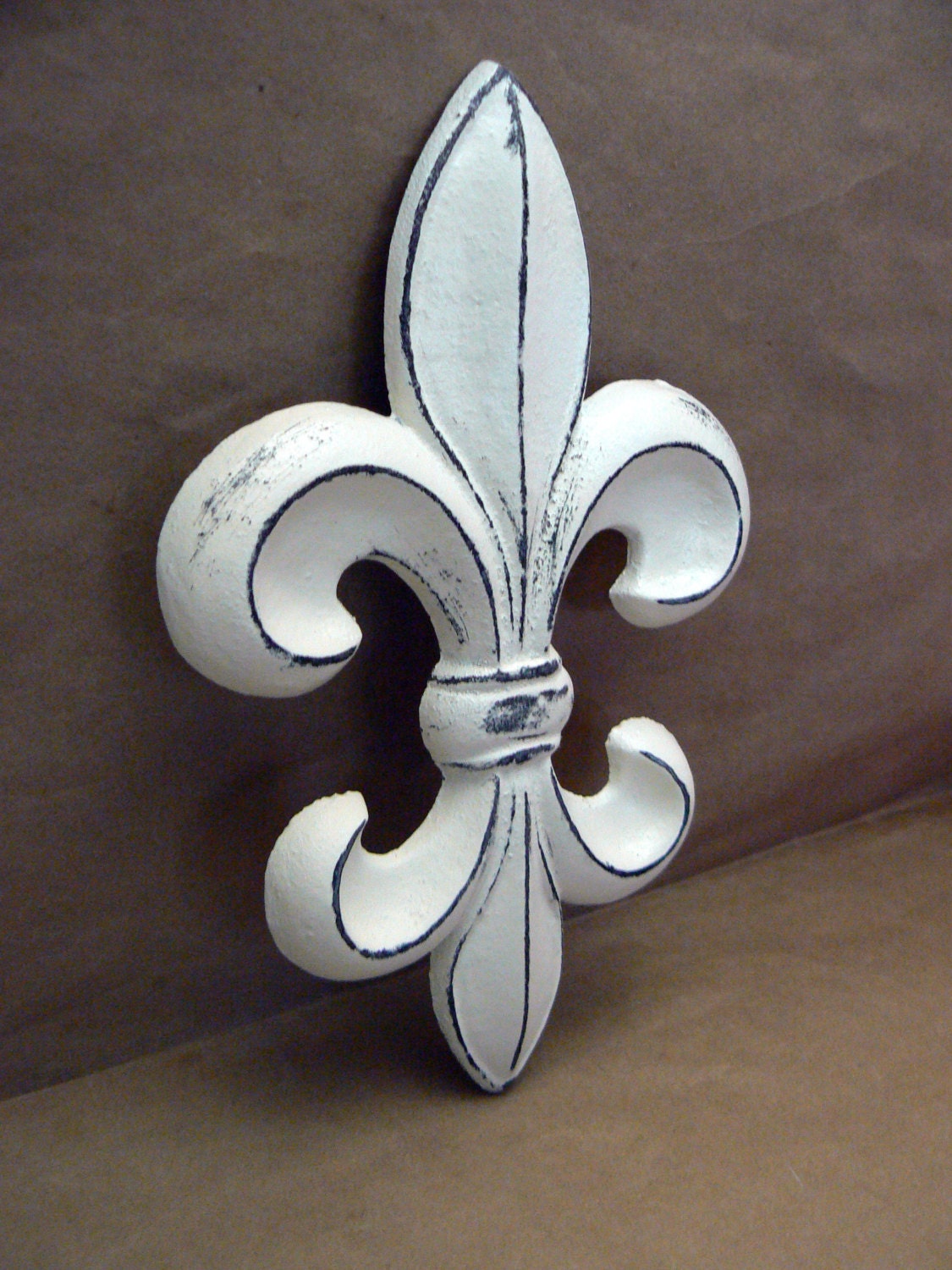 Fleur de lis Cast Iron FDL Wall Art Shabby Chic Off White ...